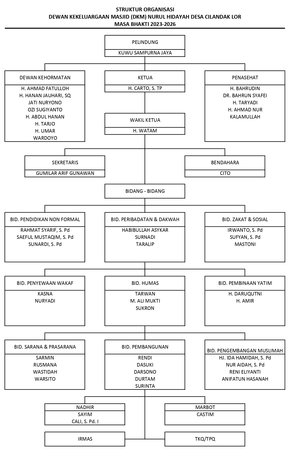 STRUKTUR ORGANISASI DEWAN KEKELUARGAAN MASJID (DKM) NURUL HIDAYAH DESA CILANDAK LOR PERIODE 2023-2026